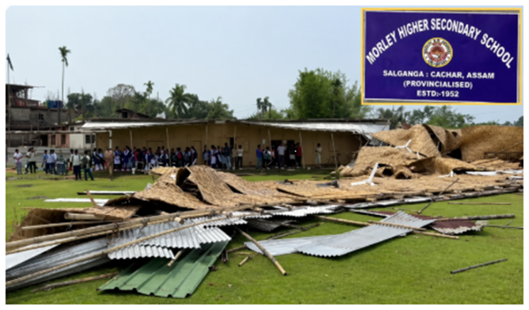 সালগাঙ্গা মর্লি হায়ার সেকেন্ডারি স্কুল হাইলাকান্দি জেলার অন্যতম পরিচিত শিক্ষাপ্রতিষ্ঠান। Barak Bulletin-এর প্রতিবেদনে জানানো হয়েছে, প্রবল শিলাবৃষ্টি ও ঝোড়ো হাওয়ায় বিদ্যালয়ের ছাদের টিন ও কাঠামো ব্যাপক মাত্রায় ক্ষতিগ্রস্ত হয়েছে। ঝড়ের বেগে ছাদের একাংশ উড়ে গেছে এবং বৃষ্টির জল ঢুকে পড়ে শ্রেণিকক্ষে থাকা আসবাব, বই ও শিক্ষা-উপকরণও নষ্ট হয়ে যাওয়ার আশঙ্কা রয়েছে। ঘটনার পরপরই বিদ্যালয় কর্তৃপক্ষ পরিস্থিতি মূল্যায়ন করে এবং শিক্ষার্থীদের নিরাপত্তার স্বার্থে পাঠদান স্থগিতের ঘোষণা দেয়।